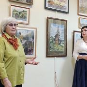 На выставке представлено 67 работ в самых разных техниках: акварель ,пастель, графика, масло, офорт,авторская техника на бересте.